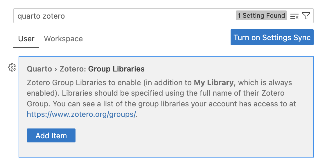 Finally, go to Zotero settings and specify that you’d like to use your web Zotero library rather than a local one: